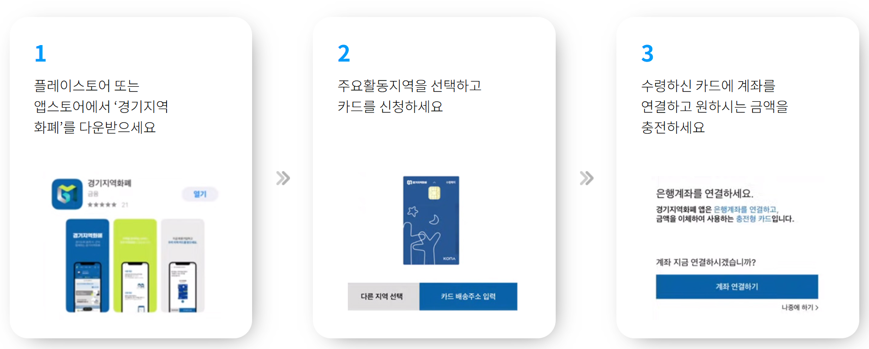 경기지역화폐는 카드형과 모바일형으로 발급받을 수 있습니다. 발급 방법은 다음과 같습니다.