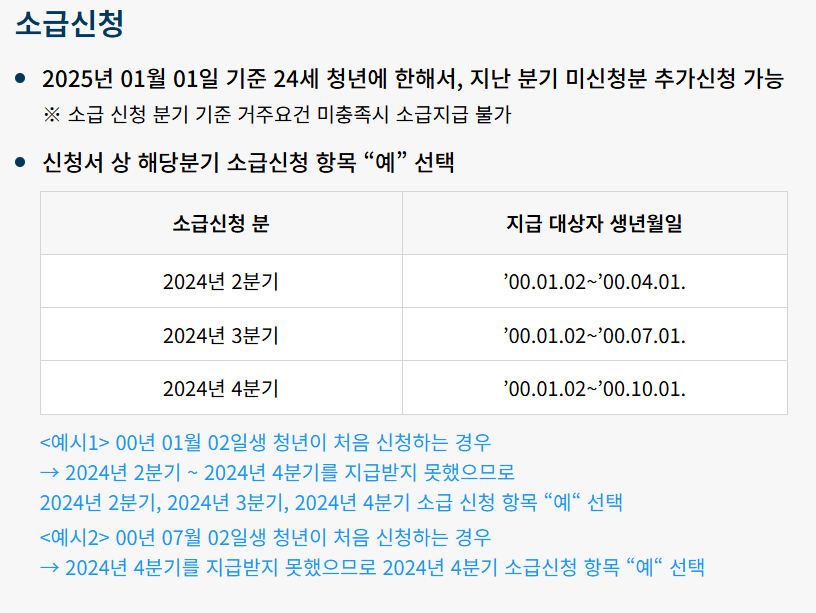 5) 지난 분기 신청하지 못한 분들에 대한 소급신청이 가능합니다.
