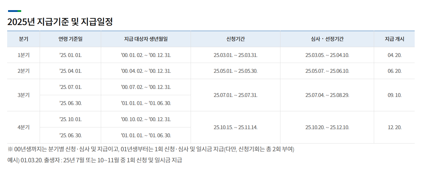 현재 1분기 지급금 25만원을 신청할 수 있는 시기입니다.