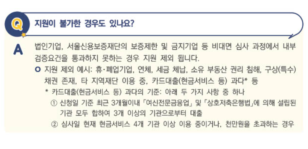 아래의 기준을 충족하는 서울시 소재의 소상공인 및 자영업자에게 지원함.