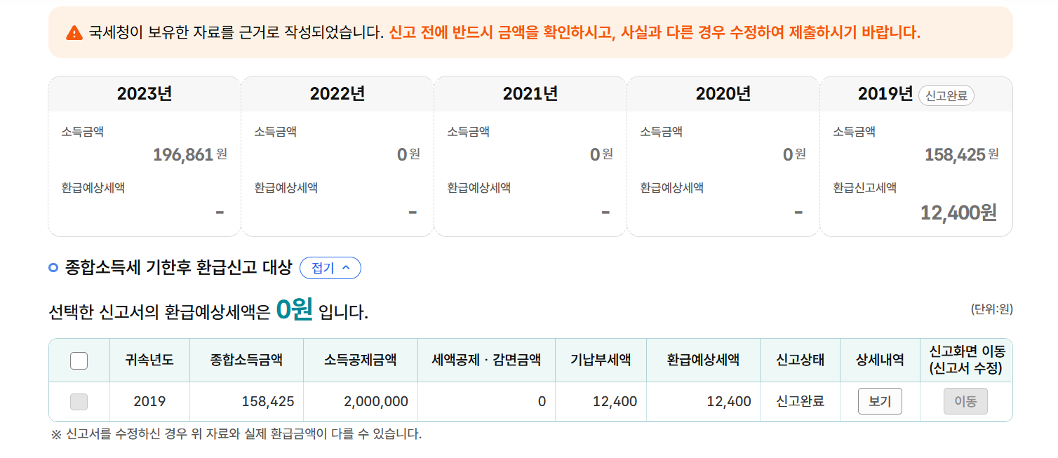 국세청에서 안내한 금액과 달라 수정을 요청한 경우에는 지급이 지연될 수 있습니다.