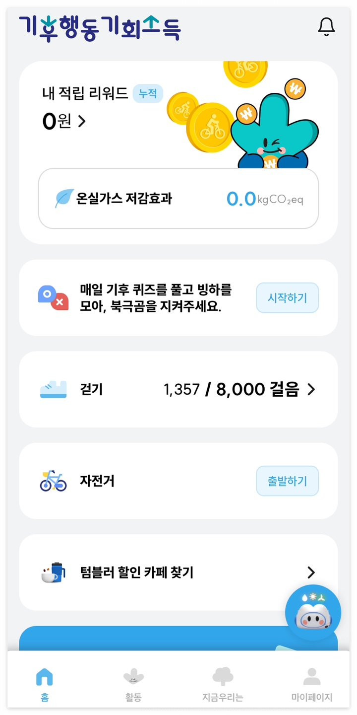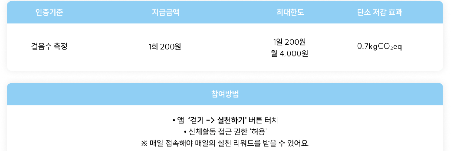 지원 내용: 앱에서 제시하는 각 활동에 참여하면 일정 포인트가 적립,