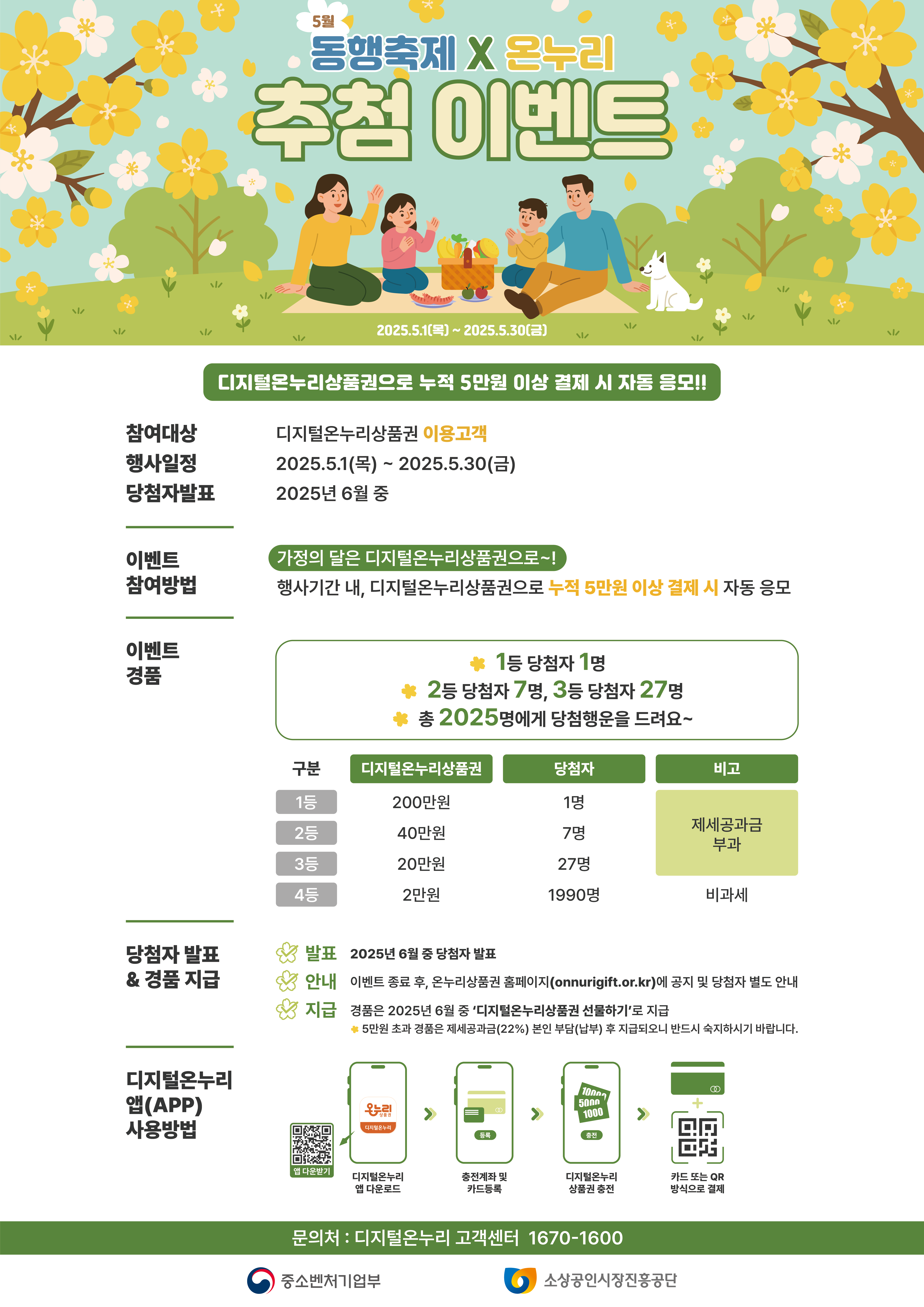 동행축제는 환급행사와 별개로, 5만원 이상 사용시에 자동으로 응모되는 경품 이벤트입니다. 동행축제는 5월에만 진행하니, 꼭 5월에 상품권을 사용해보시고 경품도 받아가시면 좋겠습니다.